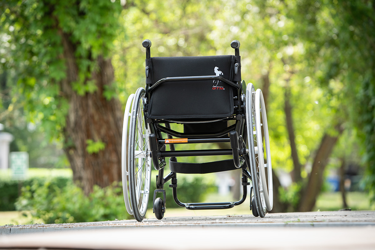 La silla de ruedas GTM BASIC cuenta con una estructura clásica de marco cerrado y con posición ajustable en el centro de gravedad.